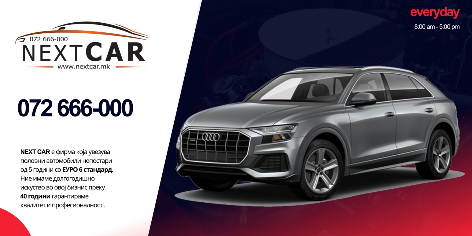 Посетете нè и уверете се зошто Next Car е вистинскиот избор за оние што бараат коректност, квалитет и лесен процес на купување.